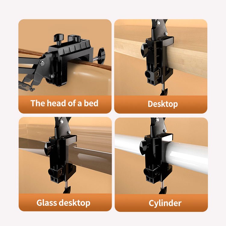 This clamp‑on and foldable long arm phone stand offers versatile hands‑free convenience for your desk, bedside, workspace or living area, combining adjustable viewing angles with a stable, space‑saving design. Crafted with durable metal and a secure clamp, this holder can attach firmly to tables, desks, bed frames or shelves without tools, giving you a reliable way to enjoy videos, video calls, reading, studying, or browsing without holding your device. Its 360° swivel head lets you rotate your phone or tablet between portrait and landscape modes easily, so you can switch from reading to watching media with comfort and flexibility — perfect for relaxing in bed or working at your desk. The foldable design allows you to collapse the long arm flat when not in use, saving desk and bedside space and making it easy to store or travel with. Built for universal compatibility with most smartphones and tablets, this adjustable stand enhances everyday convenience and keeps your device at the perfect angle for hands‑free use.